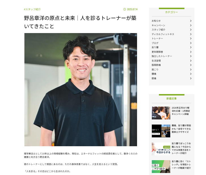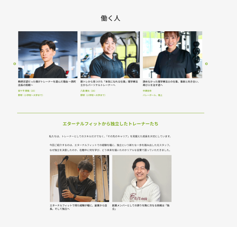 ホームページ制作を通じて関わらせていただいた、エターナルフィット様の採用改善事例をご紹介します。